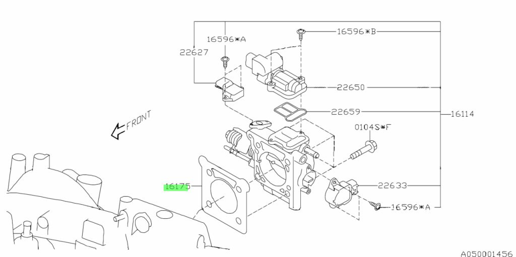 Originele Subaru gaskleppakking met OEM nummer 16175AA223, specifiek geschikt voor Subaru modellen met de EJ205 motor. Deze pakking wordt gemonteerd tussen de gasklep (throttle body) en het inlaatspruitstuk en zorgt voor een luchtdichte afdichting van het inlaatsysteem.