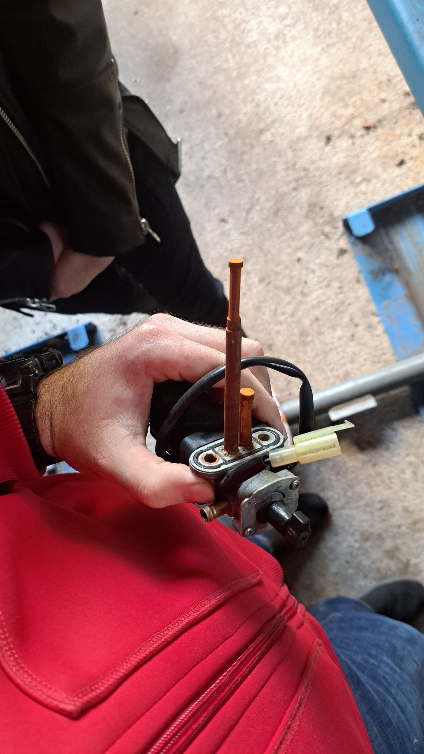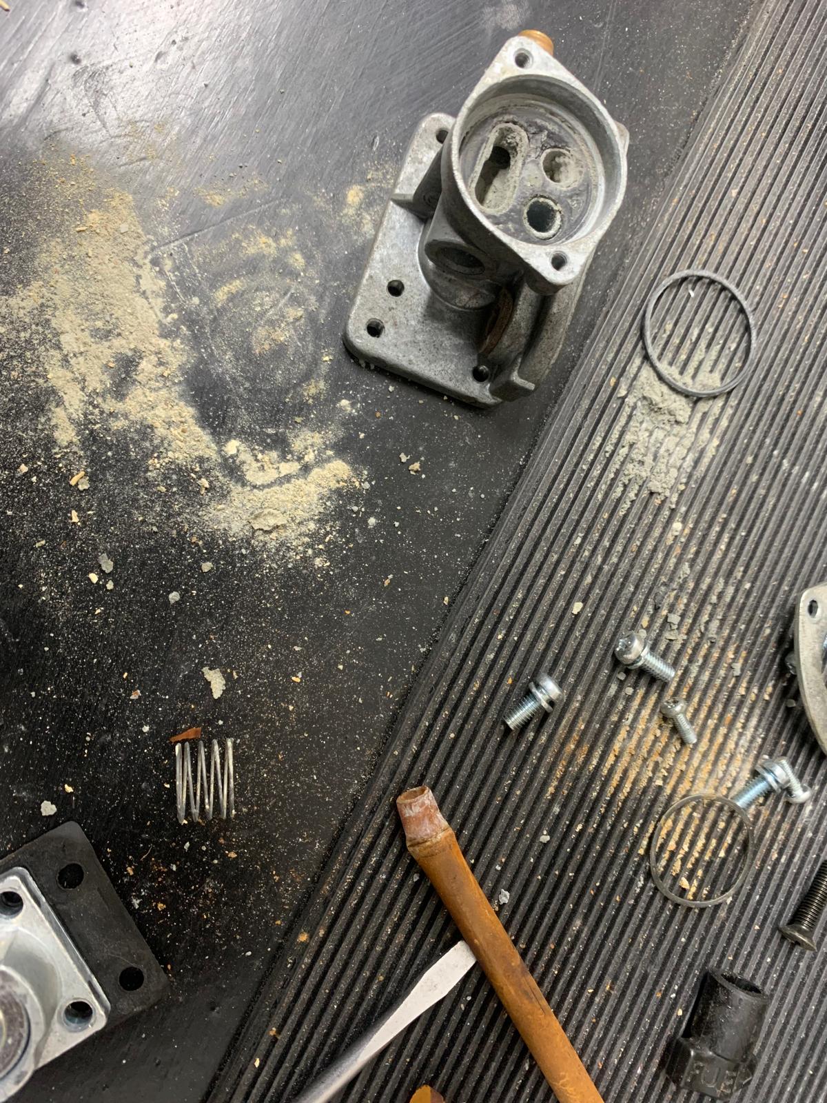 Tijdens dit proces bleek dat de originele elektrische brandstofschakelaar volledig vergaan was. Deze is daarom vervangen door een betrouwbare handmatige variant. De carburateur heeft daarnaast een complete revisieset gekregen, inclusief pakkingen en sproeiers, zodat deze weer als nieuw functioneert. Alle andere componenten zijn zorgvuldig gereinigd tot ze een schone en onbelemmerde brandstofdoorvoer gaven.