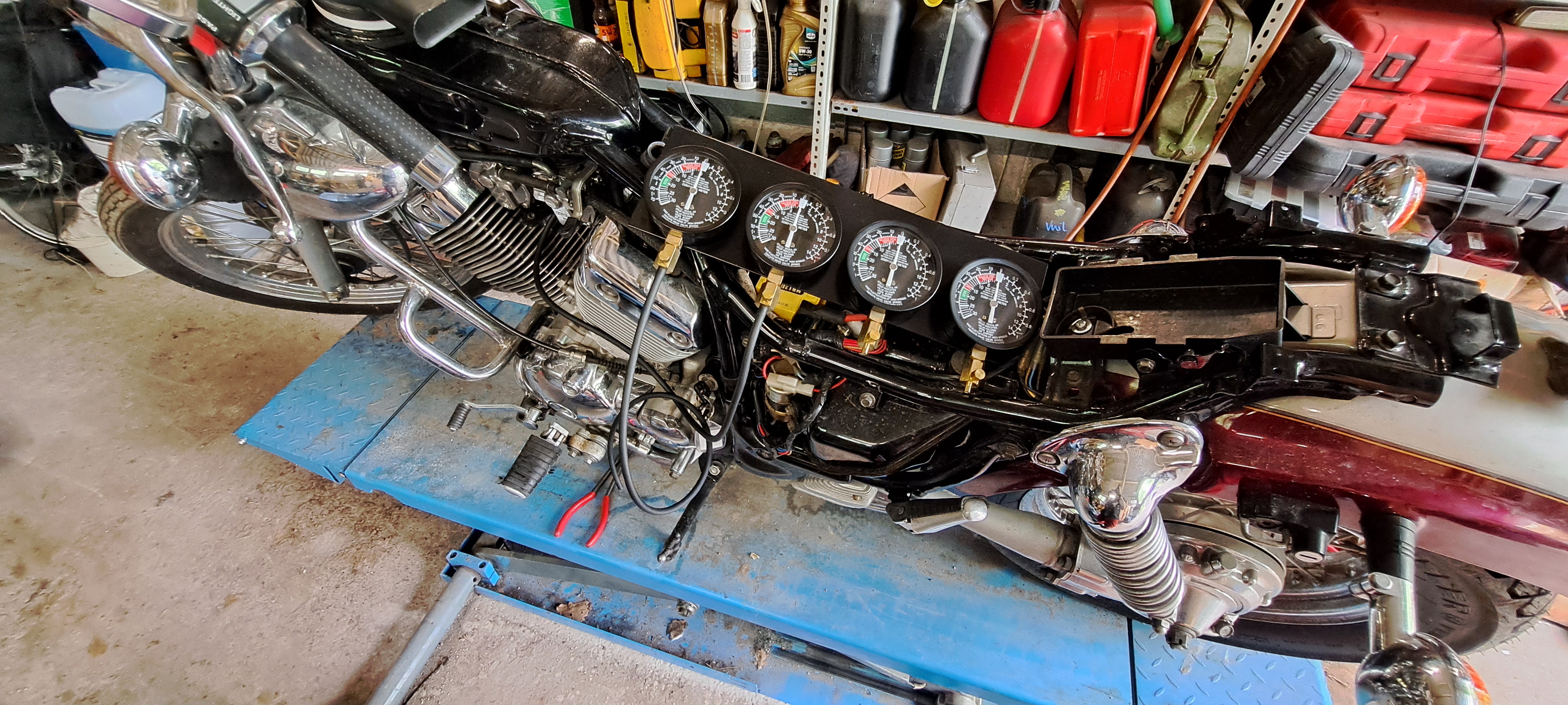 Toen de Virago bij ons binnenkwam, was de situatie duidelijk: de motor liep niet meer en starten was onmogelijk. Het complete brandstofsysteem zat vol met roest, vuil en corrosie. Hierdoor functioneerden de carburateurs, brandstofpomp en brandstofschakelaar niet meer naar behoren.